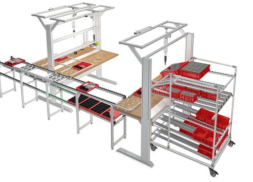 Al estar dotado de contenedores de piezas, soportes de herramientas y un buc, resulta ideal, por ejemplo, para el trabajo de producción; mientras que el brazo articulado, los enchufes, la montura para PC y la bandeja para teclado facilitan el trabajo con PC.